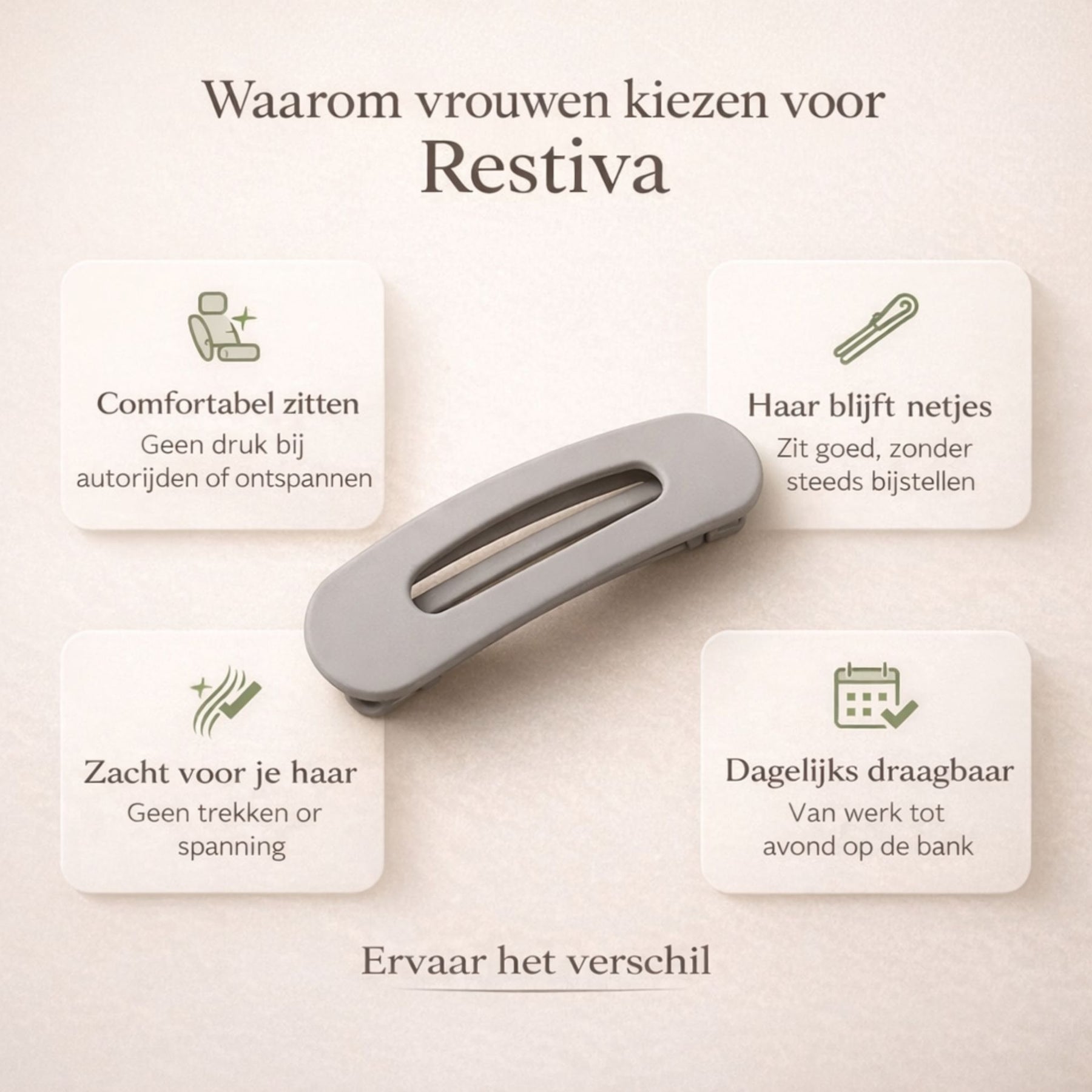 Mit der Comforva Flat Hair Clip fühlt sich Ihre Frisur endlich genauso komfortabel an, wie sie aussieht. Keine Schmerzen, keine Abdrücke, nur ein fester und zugleich sanfter Halt, der den ganzen Tag hält, selbst wenn Sie sich anlehnen oder unterwegs sind.