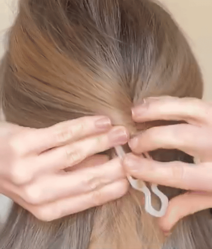 Öffnen Sie die Haarspange mit einer Hand, legen Sie sie fest um die Hochsteckfrisur und schließen Sie sie vorsichtig, sodass sie das Haar gleichmäßig fixiert. Dank des rutschfesten Griffs bleibt Ihre Frisur mühelos an Ort und Stelle, ohne dass Sie sie zurechtrücken müssen.